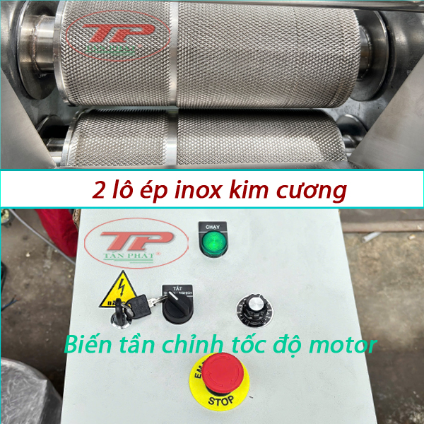 - Trục ép : 2 Trục ép inox 304 đường kính 90 dài 200mm
