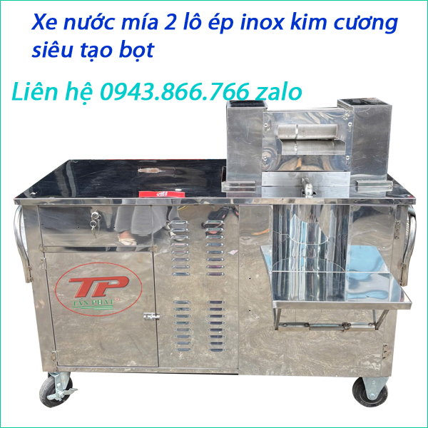 XE NƯỚC MÍA TẠO BỌT 2 LÔ INOX KIM CƯƠNG - 2HP CÓ BIẾN TẦN - TẠO BỌT